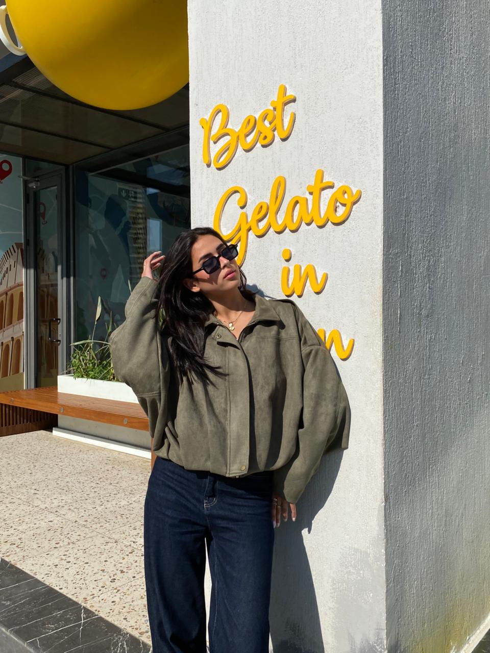 Suede bomber jacket white a Lepel collar and shoulder tabs